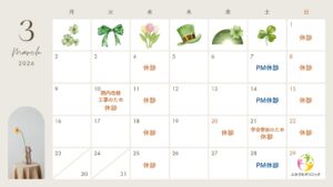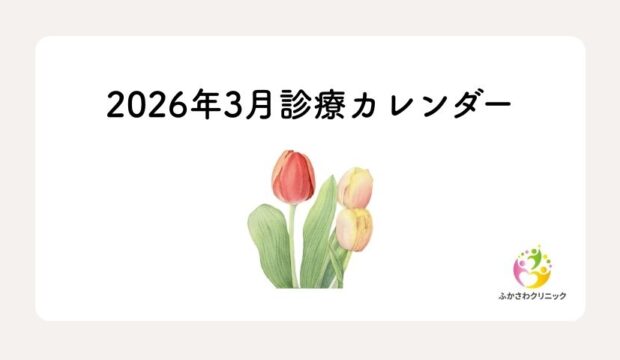 2026年3月診療案内 ‖ ふかさわクリニック 2026.02.28 内科 Post Share Hatena Line RSS feedly Pin it note こんにちは☀️ 最近は寒いなかにも時折暖かい日もあり、まさに三寒四温、春ももうすぐですね☘️ 3月の当院の診療カレンダーをお知らせいたします📣 花粉症のご相談も日に日に増えてきております🌲 体調のお困りごとは、ぜひ当院にお気軽にご相談ください🏥 Post Share Hatena Line RSS feedly Pin it note 2026年2月診療カレンダー 前の記事