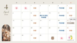 2026年4月診療カレンダー ‖ ふかさわクリニック 2026.04.07 内科 Post Share Hatena Line RSS feedly Pin it note こんにちは☀️ふかさわクリニックです🏥 ぽかぽか陽気の日が増えてまいりましたが、同時に花粉もピークを迎えております🌲 4月の診療カレンダーをお知らせします📅 ✅4/9は私用(入学式参加)のため、10:30受付終了・11:00診療終了させていただきます🙇♂️ ✅4/19は日曜日ですが休日当番医のため診療いたします🏥 Post Share Hatena Line RSS feedly Pin it note 2026年3月診療案内 ‖ ふかさわクリニック 前の記事